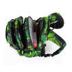 Zielono-czarny zestaw tornistra i plecaka dla uczniów od 4 klasy, którzy potrzebują miejsca na wiele rzeczy. Posiada trzy przestronne przegrody z wyściełaną przegrodą na laptopa 15" i mnóstwem mniejszych kieszeni na różne przedmioty. Kieszenie boczne mogą również pomieścić butelkę o pojemności 1,5 litra. Tył plecaka ma anatomiczny kształt i jest miękko wyściełany. Podobnie jak szelki naramienne. W małej komorze znajduje się organizer i wyjmowany klips na klucze. Po bokach znajdują się paski kompresyjne do regulacji głębokości plecaka lub mocowania butelki. Oczywiście są też elementy odblaskowe. Dlaczego Tornister 23 jest odpowiednim plecakiem dla Twojego dziecka Ma na uwadze zdrowe plecy dzieci - jest anatomicznie ukształtowany. Jest wygodny w noszeniu - plecy i ramiączka mają wygodną wyściółkę z siatki 3D. Długość pasków można łatwo regulować. W porównaniu z innymi plecakami (np. Digital lub Energy) plecak jest bardziej wytrzymały. Zalecamy zakup klamry na klatkę piersiową, aby utrzymać paski prawidłowo na ramionach. Posiada trzy główne przegrody. Główna komora może pomieścić duże teczki, zeszyty A4, a wyściełana kieszeń ma miejsce na tablet lub laptop do 15". U góry znajduje się pasek na rzep do zabezpieczenia laptopa wewnątrz. Saszetka i pudełko na przekąski znajdują miejsce w środkowej komorze. Butelka z napojem ma miejsce w bocznych kieszeniach. Wystarczy ją rozpiąć i włożyć do siateczkowego woreczka wewnątrz. Większe butelki (np. 1,5 l) zaleca się zabezpieczyć bocznym paskiem. Boczny pasek kompresyjny służy do regulacji głębokości plecaka. W przedniej komorze znajduje się poręczny organizer na telefon komórkowy, słuchawki, przybory do pisania oraz kieszeń z wyjściem na power bank. W górnej części tej komory znajduje się odpinany klips z karabińczykiem na klucze. Spód jest wyściełany i zszyty. Dzięki elementom odblaskowym (z przodu i z tyłu) plecak, a tym samym uczeń, są widoczni w ciemności. Materiały użyte do produkcji tego plecaka uczniowskiego spełniają normy UE w zakresie bezpieczeństwa. W tylnej komorze wszyta jest plakietka z imieniem. Uczeń może zapisać na nim swoje imię i nazwisko oraz dane kontaktowe za pomocą markera alkoholowego lub zmywalnego na wypadek utraty 3-letniej gwarancji na plecak. Tkanina na części z nadrukiem jest cięta z rolki, więc rozkład kolorów może się różnić (może różnić się od plecaka na zdjęciu). Torba w przedniej komorze, którą widać na niektórych zdjęciach, nie jest dołączona do plecaka. Można go kupić w kategorii akcesoria. Piórnik, niezbędny towarzysz na cały rok szkolny Piórnik został zaprojektowany tak, aby pomieścić wszystko, czego potrzebujesz na lekcjach czeskiego, matematyki i plastyki.Jednocześnie każde narzędzie będzie miało swoje miejsce - przybory do pisania należą do 20 gumowych uchwytów, kompasy, gumki, linijki i zakreślacze mają miejsce pod przegrodą z uchwytami, a na spodzie pokrywy znajdują się przegródki i kieszenie na dokumenty, karty lub fiszki.Zamek błyskawiczny, który utrzymuje zawartość razem po zapięciu, nie zaczepia się i ma wysokiej jakości ząbki odporne na zaczepy. Dlaczego warto wybrać ten zestaw? Zmieścisz w nim laptopa, przybory do nauki i rzeczy na popołudniowe kółko zainteresowań. Poza trzema głównymi przegrodami ma też małe kieszenie boczne, w których można schować wiele drobnych przedmiotów. Dzięki odważnemu zielonemu motywowi będziesz zawsze widoczny w ciągu dnia, a wieczorem dzięki elementom odblaskowym. W etui można układać kredki, flamastry, nożyczki i przybory do rysowania. Plecak jest również idealnym partnerem do ćwiczeń sportowych i gier. Pomieści ubrania, dobrą przekąskę i duży napój.