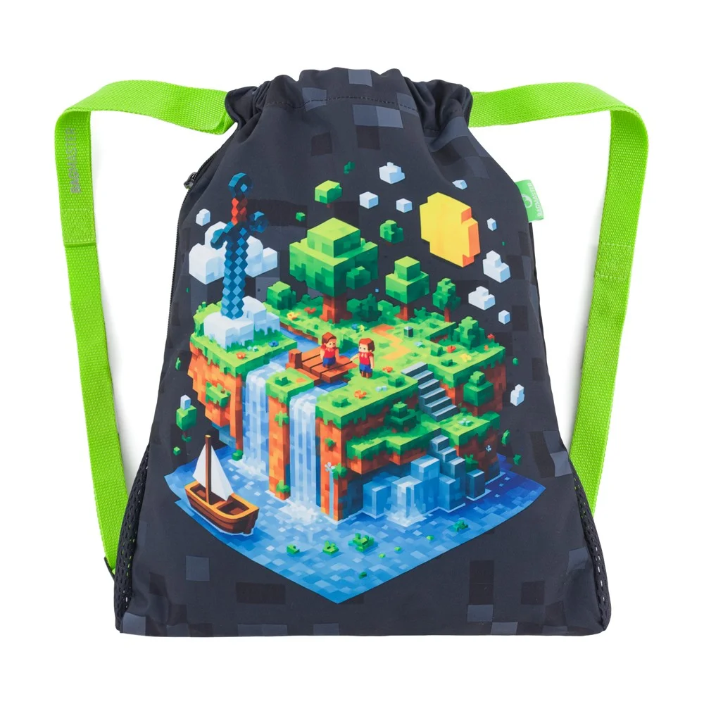 Látkový sáček na tělocvik, přezůvky nebo věci do družiny. Má nastavitelné ramenní popruhy, reflexní prvky a síťové odvětrávací otvory.  Sportovní vak na záda Látkový sáček je prostorný – vejdou se do něj papuče, oblečení a přezůvky na tělocvik či věci do odpoledního kroužku.  Uzavírá se jednoduše stažením popruhů.  Pevné a široké popruhy neřežou na ramenou. Pomocí přezek se dá nastavit délku popruhů na postavu školáka.  Drobnější věci si může školák schovat do kapsy na zip, která je v horní části vaku. Ve spodní části sáčku je síťované odvětrání. To se hodí hlavně když školák do vaku hodí zpocený úbor z těláku či fotbalu.  Díky reflexním prvkům vak svítí ve tmě. Tyto prvky splňují normy EU.  Látkový sáček si školák může přehodit k batohu přes jedno rameno nebo jej nosit na obou ramenou. Proč se Ti bude do školy hodit k batohu i látkový vak?  Na tělocvik nebo kroužek nemusíš nosit celou školní tašku. Vše potřebné si dáš do vaku, nasadíš na záda a jdeš.  Vak využiješ i mimo školu – třeba na trénink, skautí výlet nebo na prázdniny u babičky.