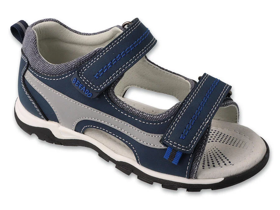 Skórzana wkładka Sandały dziecięce DENIM Befado w kolorze granatowym - wygodne i przewiewne na aktywne lato Sandały dziecięce Befado zostały zaprojektowane z myślą o wygodzie i bezpieczeństwie małych stóp podczas codziennych aktywności. Dzięki lekkiej i przewiewnej konstrukcji idealnie sprawdzą się w ciepłe dni - zarówno podczas spacerów, zabaw na placu zabaw, jak i w przedszkolu. Wnętrze buta zostało wykonane z myślą o wygodzie dziecka - skórzana wyściółka zapewnia komfortowy kontakt ze stopą, sprzyja prawidłowej cyrkulacji powietrza i pomaga zachować higienę podczas noszenia. Dwa zapięcia na rzepy pozwalają na łatwe dopasowanie sandałów do stopy, ułatwiając ich zakładanie i zdejmowanie. Model ten posiada także lekko wzmocniony zapiętek, który pomaga stabilizować stopę podczas chodzenia, a elastyczna podeszwa pomaga amortyzować kroki i zwiększa komfort przy każdym ruchu. Sportowy design i jasne kolory sprawiają, że te sandały są idealnym dodatkiem do letnich strojów dla chłopców. Najważniejsze cechy: - skórzana wyściółka zapewniająca komfort dziecięcym stopom, - dwa zapięcia na rzepy dla szybkiego dopasowania do stopy, - lekko wzmocniona pięta pomaga stabilizować stopę, - elastyczna podeszwa , która amortyzuje kroki i zwiększa komfort podczas chodzenia, - lekka i przewiewna konstrukcja, idealna na letnie dni, - wygodne sandały dziecięce do przedszkola, na spacery i do codziennej zabawy.
