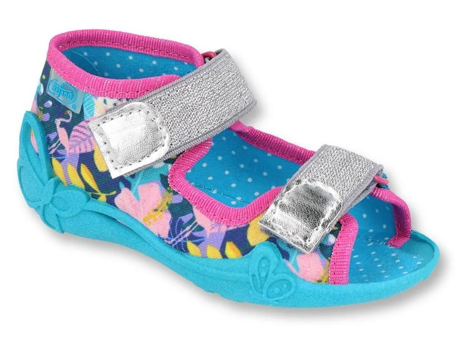 BEFADO 242P098 sandały dziewczęce niebieskie kwiaty