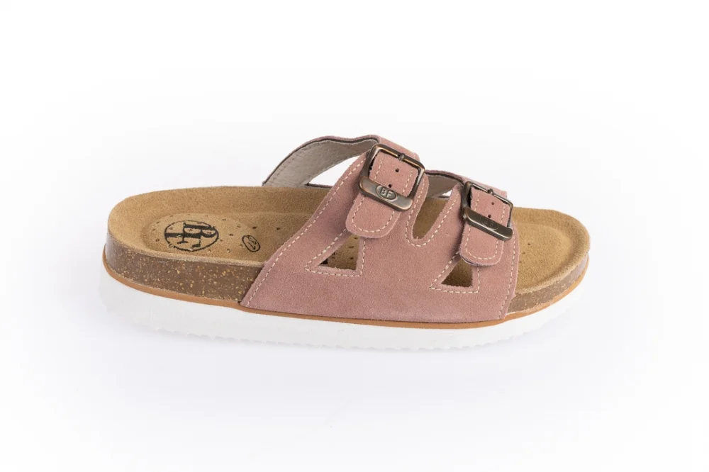 Damski pantofel z korka, skórzana cholewka.
