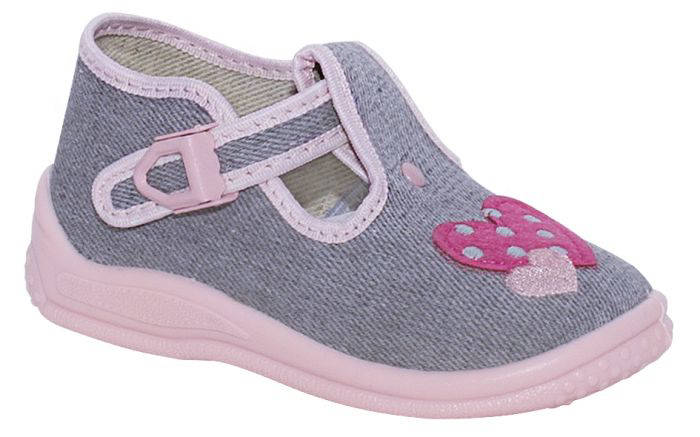 Dziecięce kapcie Bighorn BERTA zapinane na klamrę w kolorze granatowym w białe kropki ozdobione kwiatkiem. Materiał to wysokiej jakości bawełna. Lekka elastyczna podeszwa wykonana z PVC. Wkładka wykonana ze skóry naturalnej i elastycznej pianki z węglem aktywnym. Skóra pochłania nadmiar wilgoci, a węgiel aktywowany nieprzyjemne zapachy, zapewniając stopie uczucie świeżości. Pięta buta jest wzmocniona. But jest bardzo wygodny i lekki. Wyprodukowano w UE.