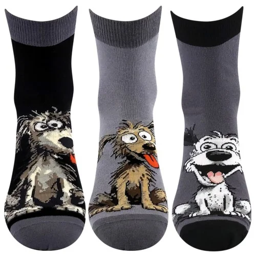 BOMA Letnie skarpetki damskie ALIK 01 z psami MIX A ciemne (3 pary)