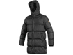 Męski ocieplany płaszcz 3/4 z odpinanym kapturem. Boczne kieszenie zapinane na guziki, rękawy z elastycznym mankietem, czarne akcesoria odblaskowe, boczne rozcięcia zapinane na suwak, wewnętrzna kieszeń na suwak