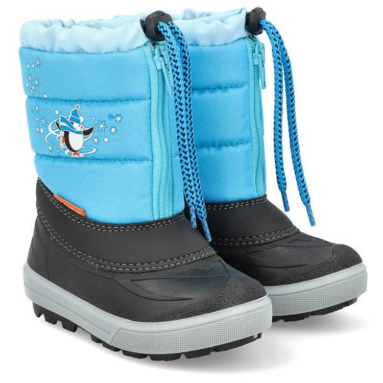 Dziecięce buty zimowe Demar KENNY ocieplane prawdziwą owczą wełną są odpowiednie na śnieg i mróz. Kolor butów jest jasnoniebieski. Buty zimowe są bardzo ciepłe i lekkie. Wodoodporna dolna część wykonana jest z gumy termicznej, a górna część z wytrzymałej tkaniny. Z przodu znajduje się zamek błyskawiczny dla wygodnego i łatwego zakładania butów. Na sznurowadła można naciągnąć cholewkę przed padającym śniegiem. Posiadają grubszą antypoślizgową podeszwę zapewniającą bezpieczeństwo chodzenia. Wyprodukowano w UE.
