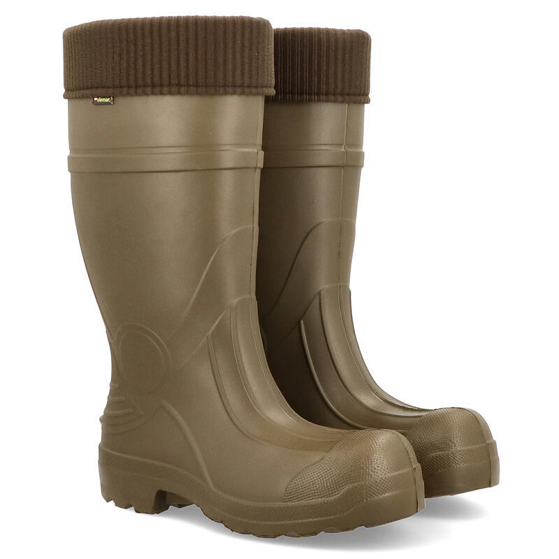 W kolorze zielonym buty te świetnie nadają się do polowania, wędkowania, ogrodnictwa lub chodzenia w deszczową pogodę i wysoką trawę. Wyjmowana ocieplana wkładka umożliwia łatwą konserwację i pranie w temperaturze do 40°C. Buty można również nosić bez wkładki, dzięki czemu nadają się na wiele sezonów. Model posiada certyfikat CE i został wyprodukowany w UE.