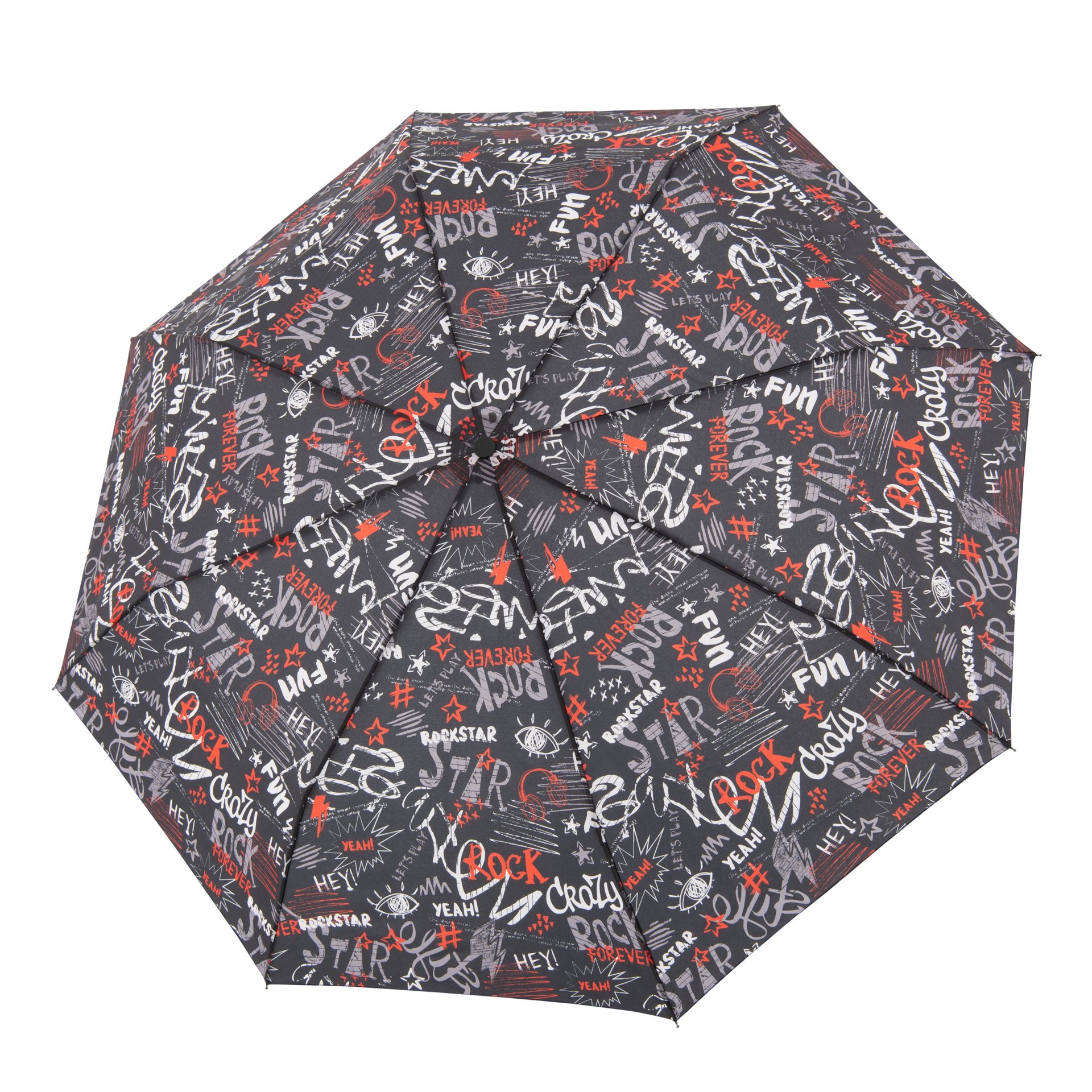 Hit Magic Printed Graffiti - Damski w pełni automatyczny parasol Damski w pełni automatyczny parasol z nowoczesnym wzorem, który jest dostarczany z pokrowcem z tym samym motywem. Można go szybko i łatwo otworzyć i zamknąć jedną ręką, naciskając przycisk. Dzięki kompaktowym rozmiarom można go łatwo umieścić w torebce i torbie. Ma czarną konstrukcję wykonaną z połączenia włókna szklanego i stali, co zapewnia jej wytrzymałość i stabilność. Odwrócenie parasola nie spowoduje jego uszkodzenia. Poszycie, wykonane z cienkiej tkaniny pongee, jest przyjemne w dotyku i odporne na zmiany wilgotności i temperatury oraz nie kurczy się. Uwaga: otwieranie i zamykanie w pełni automatycznego parasola odbywa się wyłącznie poprzez naciśnięcie przycisku, w przeciwnym razie mechanizm może ulec uszkodzeniu. Informacje o produkcie: odporny na wiatr, nie uszkadza parasola po przewróceniu konstrukcja poszycia wykonana w 100% z poliestru czarna stal i włókno szklane