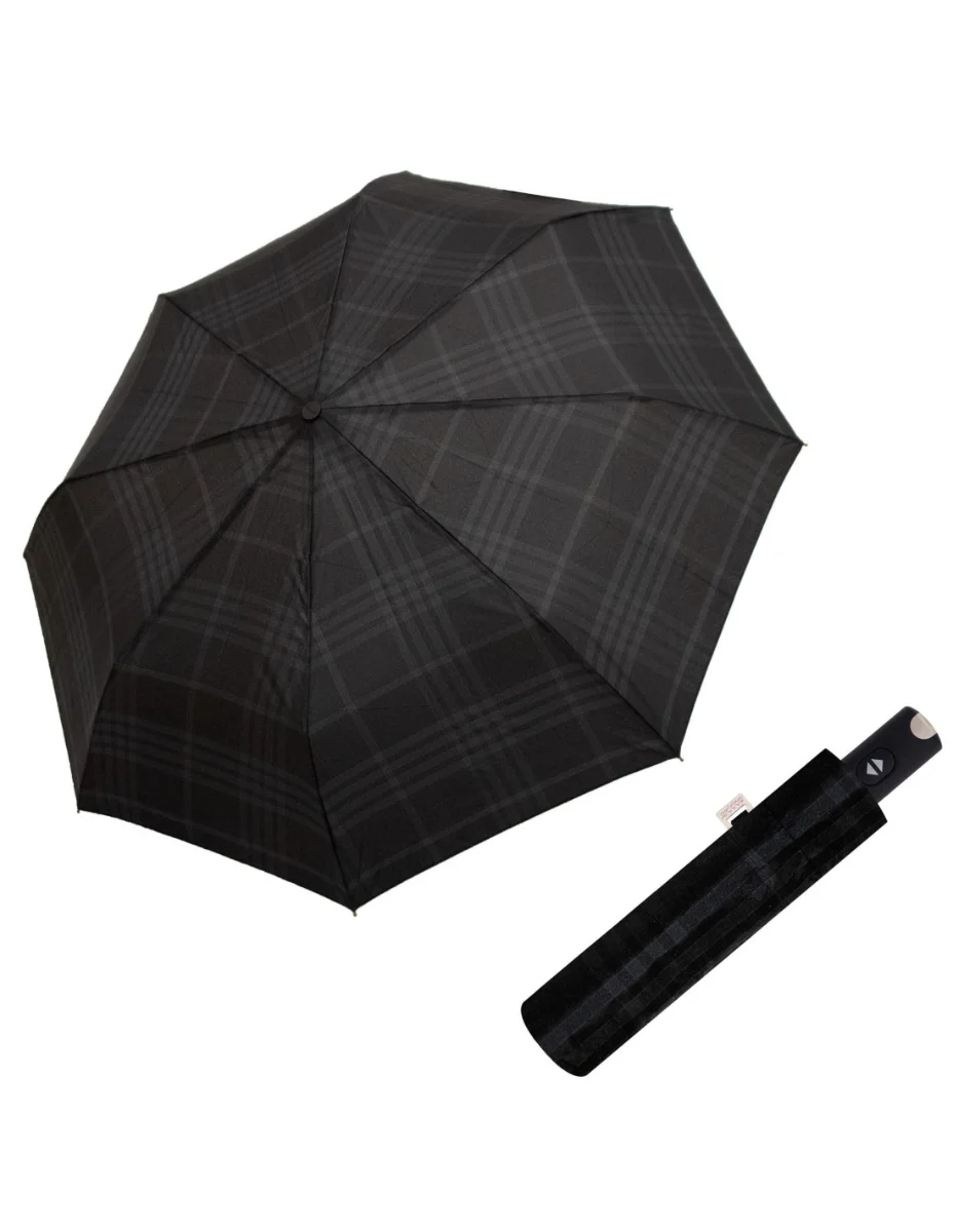 DOPPLER Carbonsteel Magic tkana kratka czarno-szara - w pełni automatyczny parasol męski brązowy