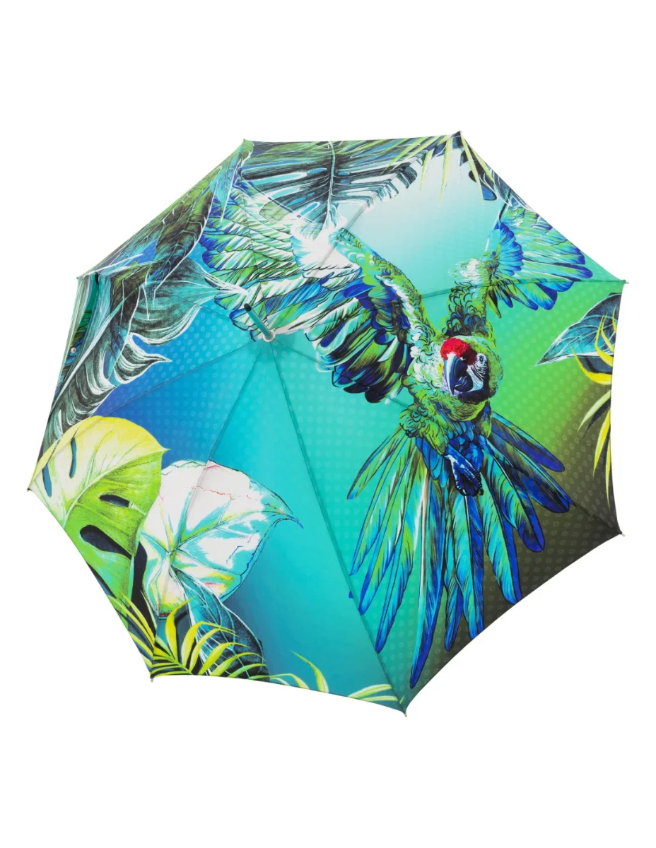 DOPPLER MANUFAKTUR Elegance Boheme Pappagallo - luksusowy parasol damski z wielokolorowym nadrukiem
