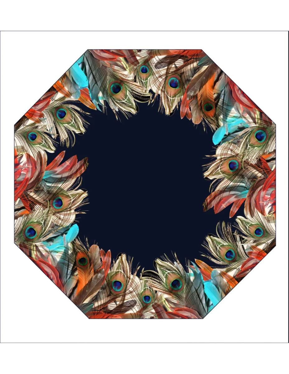 DOPPLER MANUFAKTUR Elegance Boheme Peacock - luksusowy damski parasol z nadrukiem pawich piór