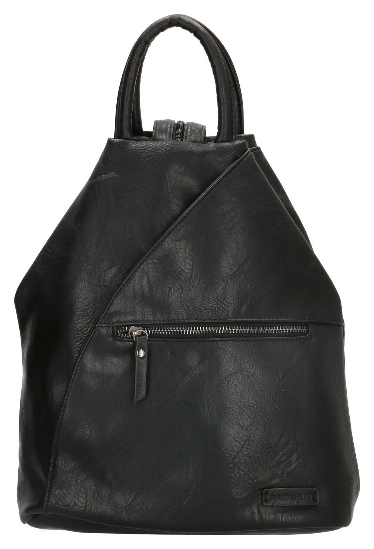 Elegantní dámský batoh Enrico Benetti Caen v černé barvě z odolného PU materiálu (28x13x35 cm).