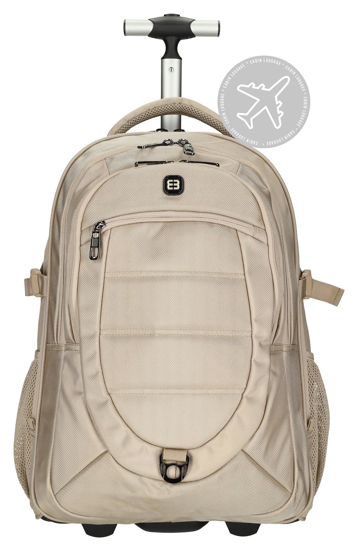 Enrico Benetti Cornell Champagne to praktyczny plecak na kółkach. Oferuje pojemność 56 litrów i miejsce na 15-calowego laptopa.