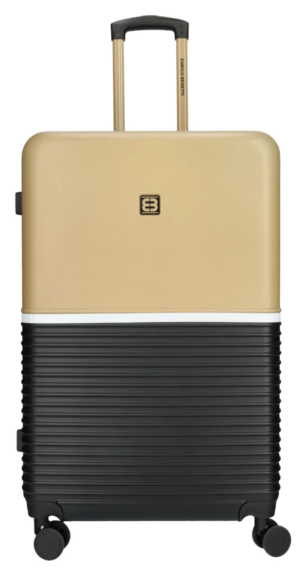 Elegancka walizka na czterech podwójnych kółkach, z zamkiem TSA dla bezpiecznej podróży.