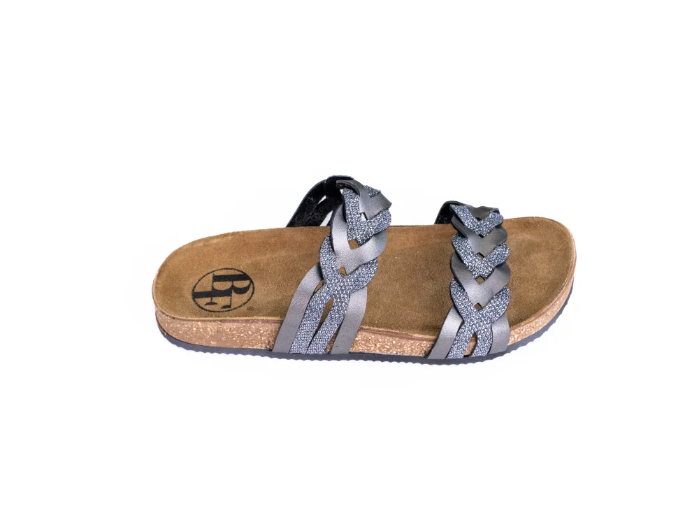 Skórzane modne kapcie ze skórzaną wyściełaną wkładką.