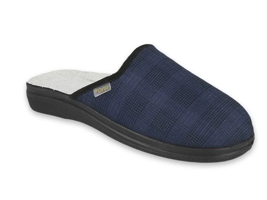 Kapcie męskie BEFADO 132M015 DrORTO w niebieską kratkę