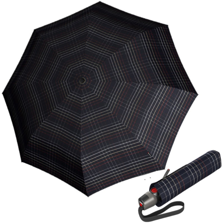Kiedy pada deszcz, Knirps T.200 Duomatic staje się idealnym towarzyszem. Praktyczne automatyczne otwieranie i zamykanie, wygodna waga i ochronny pokrowiec zapinany na zamek sprawiają, że jest kompaktowy i wygodny. A dzięki wielu wzorom istnieje odpowiedni parasol dla każdego gustu. Przekonać może nawet prawie metrowy dach, pod którym można się łatwo ukryć. Dzięki 3-częściowej konstrukcji sztycy środkowej składanie parasola kieszonkowego jest bardzo proste, a parasol można bez problemu schować do torebki. Zastosowanie wysokiej jakości materiałów (stal, aluminium i włókno szklane) oraz precyzyjne wykonanie sprawiły, że T.200 jest jednym z najbardziej wytrzymałych parasoli w naszej ofercie i z łatwością wytrzymuje wiatr o prędkości do 150 km/h - testowany w tunelu aerodynamicznym. Co daje parasol Knirps T.200 przyniesie:Skoordynowany kolorystycznie pokrowiec ochronny z zamknięciem na zamek błyskawicznyWytrzymały aluminiowy kij o ściance zwiększonej o 20 procentTrzyelementowe rozpórki ułatwiają składanie parasolaWyjątkowo płynnie działająca funkcja Duomatic (automatyczne (automatyczne otwieranie/zamykanie parasola) przy 30% mniejszym wysiłkuSrebrny stelażPowiększone profile szyn zapewniają maksymalną stabilność przy każdym kierunku wiatruWygodne automatyczne otwieranie i zamykanie za naciśnięciem przycisku.Poręczny pokrowiec zapinany na zamek błyskawiczny.Najbardziej stabilny parasol kieszonkowy w ofercie.Bardzo duży przycisk dla wygodnej obsługi.