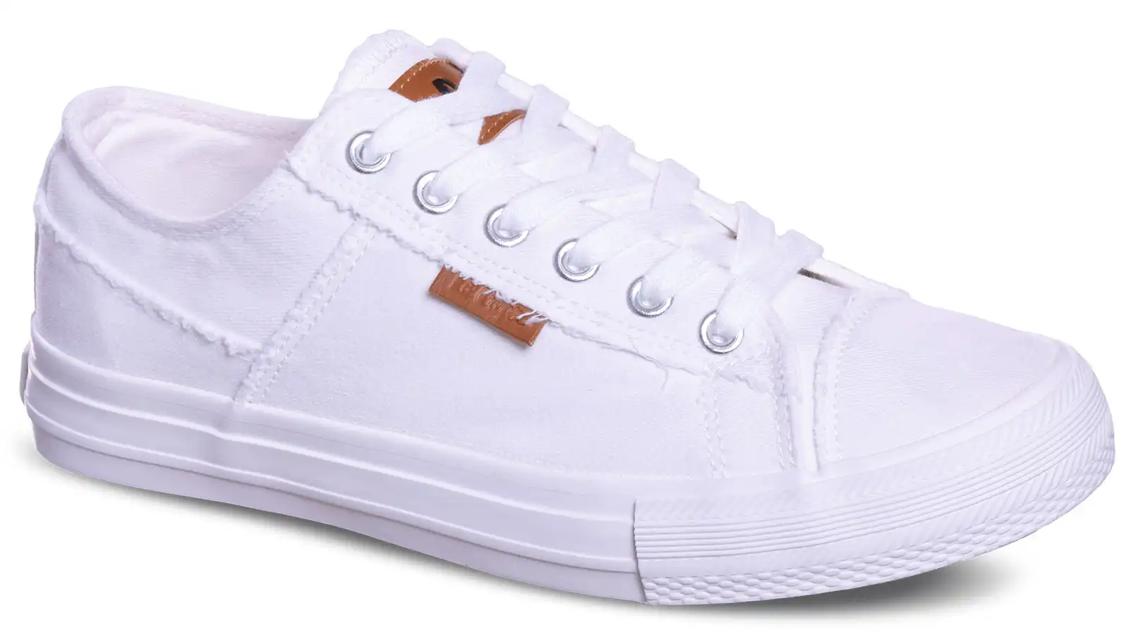 Miękka cholewka z płótna jest lekka, przewiewna i dopasowuje się do stopy. Klasyczne sznurowanie na płaskie sznurówki pozwala na łatwe dopasowanie do szerokości stopy i zapewnia stabilne trzymanie buta na stopie.