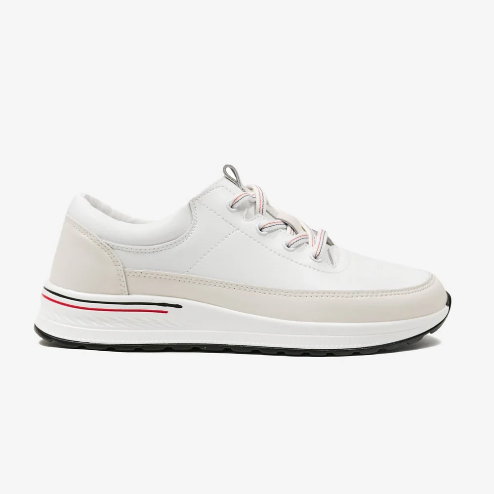 Damskie sneakersy Looke ISADORA zachwycają od pierwszego wejrzenia delikatnym i ponadczasowym połączeniem kremu i beżu , które stylowo uzupełniają czerwone akcenty na sznurowadłach i podeszwie . Rezultatem jest elegancki, czysty i nowoczesny look, który z łatwością dopasujesz do codziennych i wypoczynkowych stylizacji.