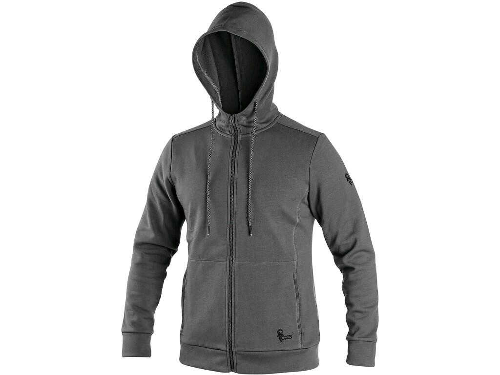 Męska bluza z kapturem zapinana na zamek, talia i rękawy wykończone elastycznymi mankietami, boczne kieszenie zapinane na zamek, plastikowe zamki, odblaskowe sznurowadła. Silikonowe wykończenie materiału zapewnia zwiększoną miękkość i elastyczność, stabilność wymiarową i mniejsze mechacenie. Do użytku w pracy i w czasie wolnym. Nadaje się do nadruku i haftu.