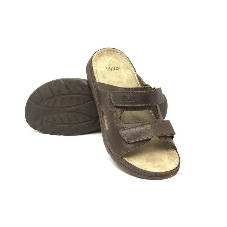 Batz Men's Mike Health Slippers - Męskie kapcie Mike Health Slippers są skórzane, mają anatomicznie ukształtowaną wkładkę i antypoślizgową podeszwę. Posiadają również 2 regulowane zapięcia na rzepy, dzięki czemu można je dopasować do każdej stopy.