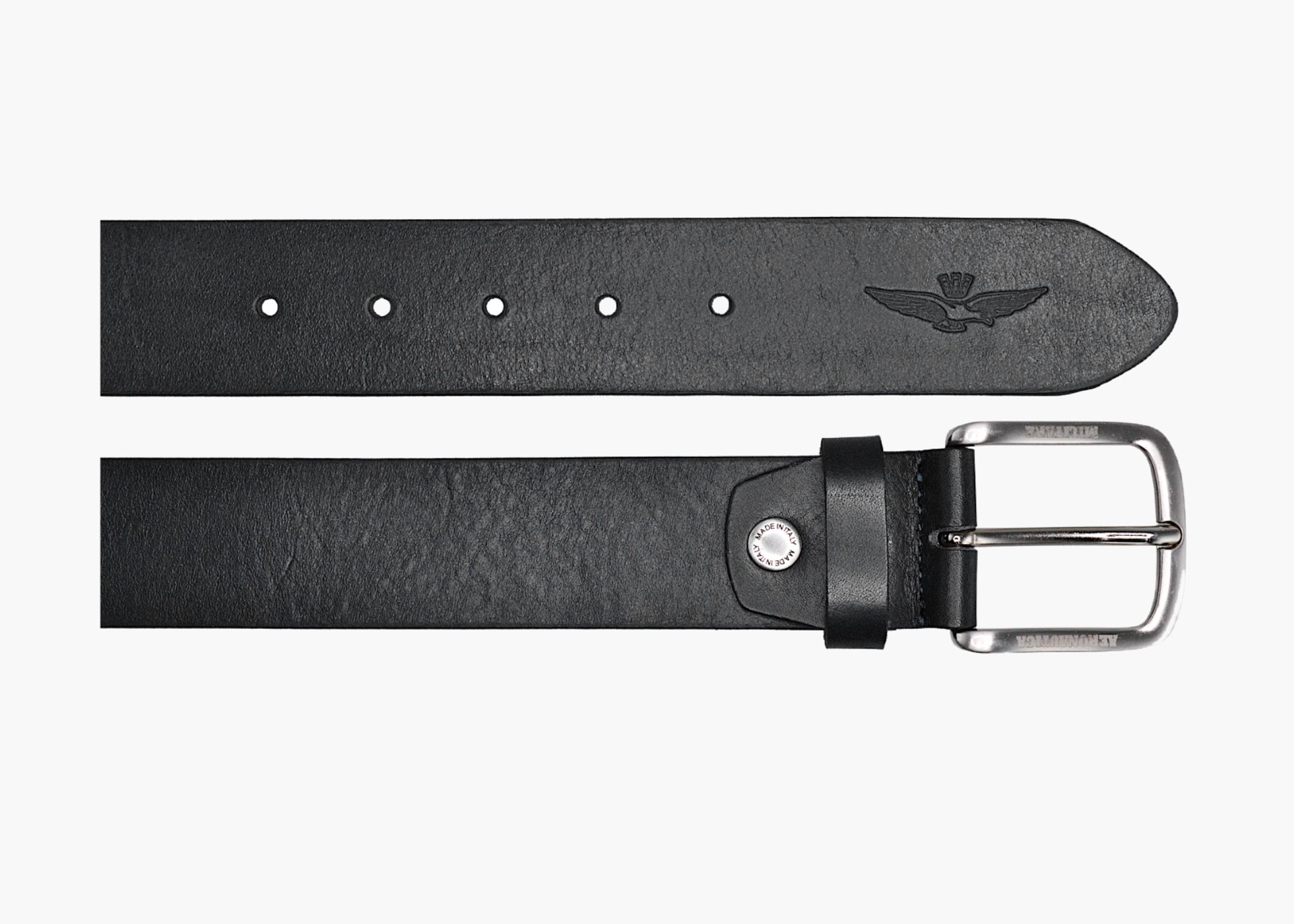 Pánský kožený pásek prestižní značky Aeronautica Militare v černé barvě v celkové délce 130 cm. Stylový pásek se zajímavou strukturou a logem AM, lze nosit ke kalhotám i šortkám. Určeno pro moderní, úspěšné muže, kteří sází na kvalitu a mají rádi sportovně-elegantní styl.