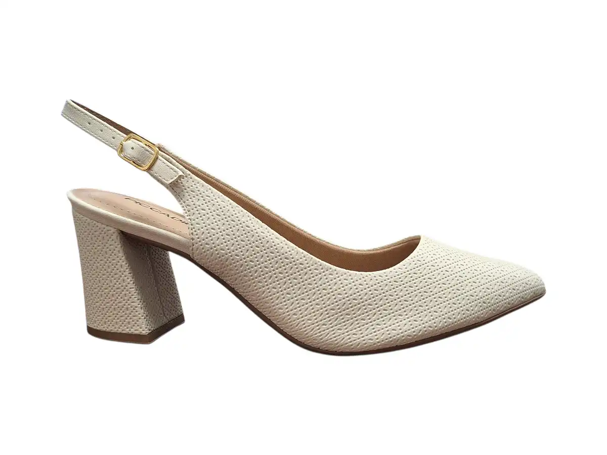 Wygodne sandały na szerokim obcasie z zamkniętym noskiem i regulowanym paskiem za piętą.