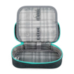 Czarno-turkusowy piórnik dla małych uczennic. Podwójna przegroda posiada gumowe pętelki na przybory do pisania, inne przybory mieszczą się w przestrzeni pod przegrodą. Wygodne zapięcie na pojedynczy zamek błyskawiczny. Posiada jedną dużą komorę i podwójną przegrodę. Przegroda ma 20 gumowych uchwytów na długopisy, kredki, nożyczki i kompas. Przegrodę można zapiąć za pomocą paska na rzep. Wewnątrz znajduje się jedna kieszeń zapinana na zamek i dwie mniejsze kieszenie na karty. Całe etui zapinane jest na zamek błyskawiczny z jedną zakładką. Zamek jest wysokiej jakości, nie zacina się ani nie rozrywa na zgięciach. Jest dopasowany do plecaka Porto 24 C i można go również znaleźć w zestawie Porto 24 C. DLACZEGO POKOCHASZ TEN PIÓRNIK? Wyobraź sobie piórnik, w którym dzięki 20 elastycznym uchwytom znajdziesz specjalne miejsce na każdą kredkę, długopis, nożyczki i kompas. Koniec z chaosem! Dzięki kieszeni zapinanej na zamek błyskawiczny wszystkie ważne notatki będą bezpieczne i zawsze pod ręką. Mniejsze kieszenie można wykorzystać na gumkę lub temperówkę.
