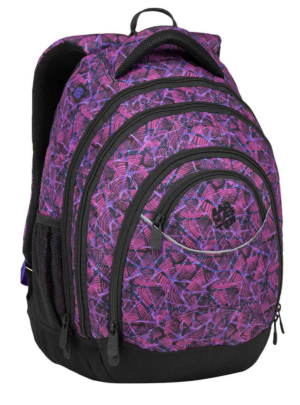 Trzykomorowy, przestronny plecak dla uczniów od 4 klasy szkoły podstawowej. Anatomicznie ukształtowane plecy z wygodną wyściółką i wyściełanymi paskami na ramiona. Dwie boczne kieszenie na butelki. Organizer, materiałowe wyjście na słuchawki. Elementy odblaskowe. wyjątkowo lekki, waży tylko 0,7 kg!