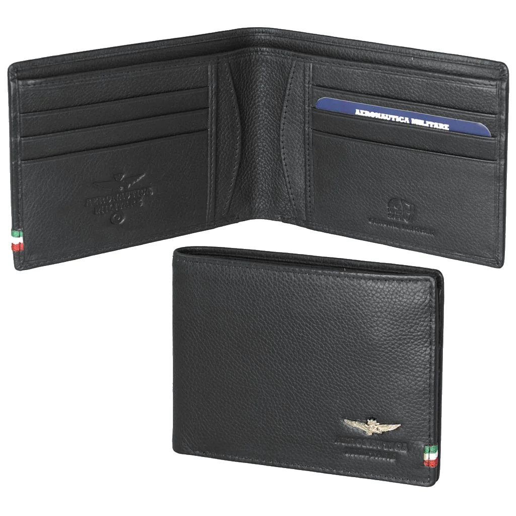 Męski portfel skórzany prestiżowej włoskiej marki Aeronautica Militare w popularnym czarnym kolorze. Stylowy portfel odpowiedni dla wysportowanych mężczyzn lubiących elegancję.