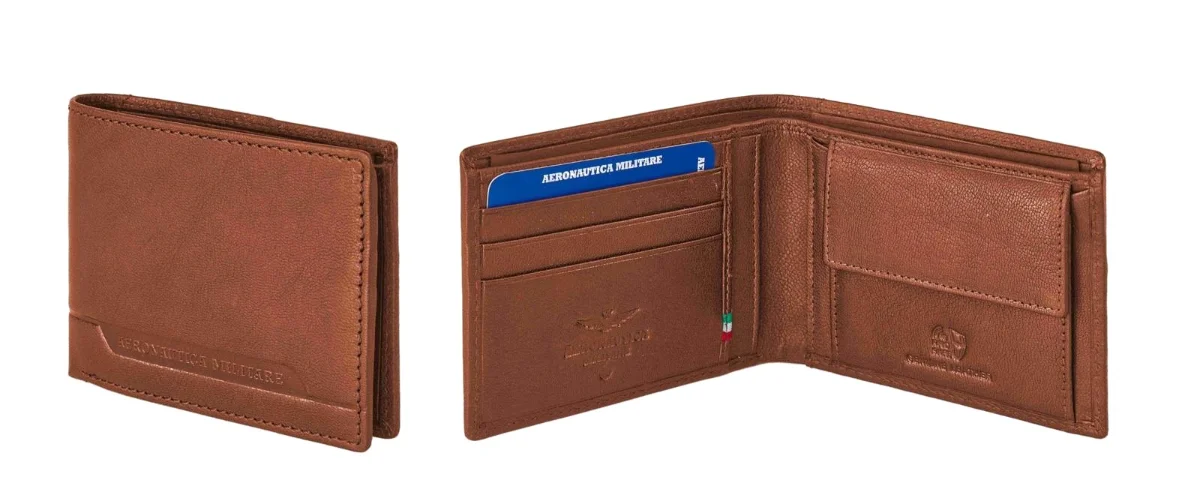 • Wytłoczone logo Aeronautica Militare z przodu i wewnątrz portfela