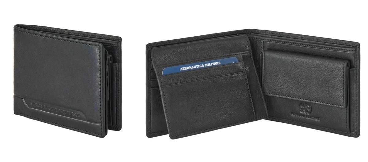 • Logo Aeronautica Militare z przodu i wewnątrz portfela