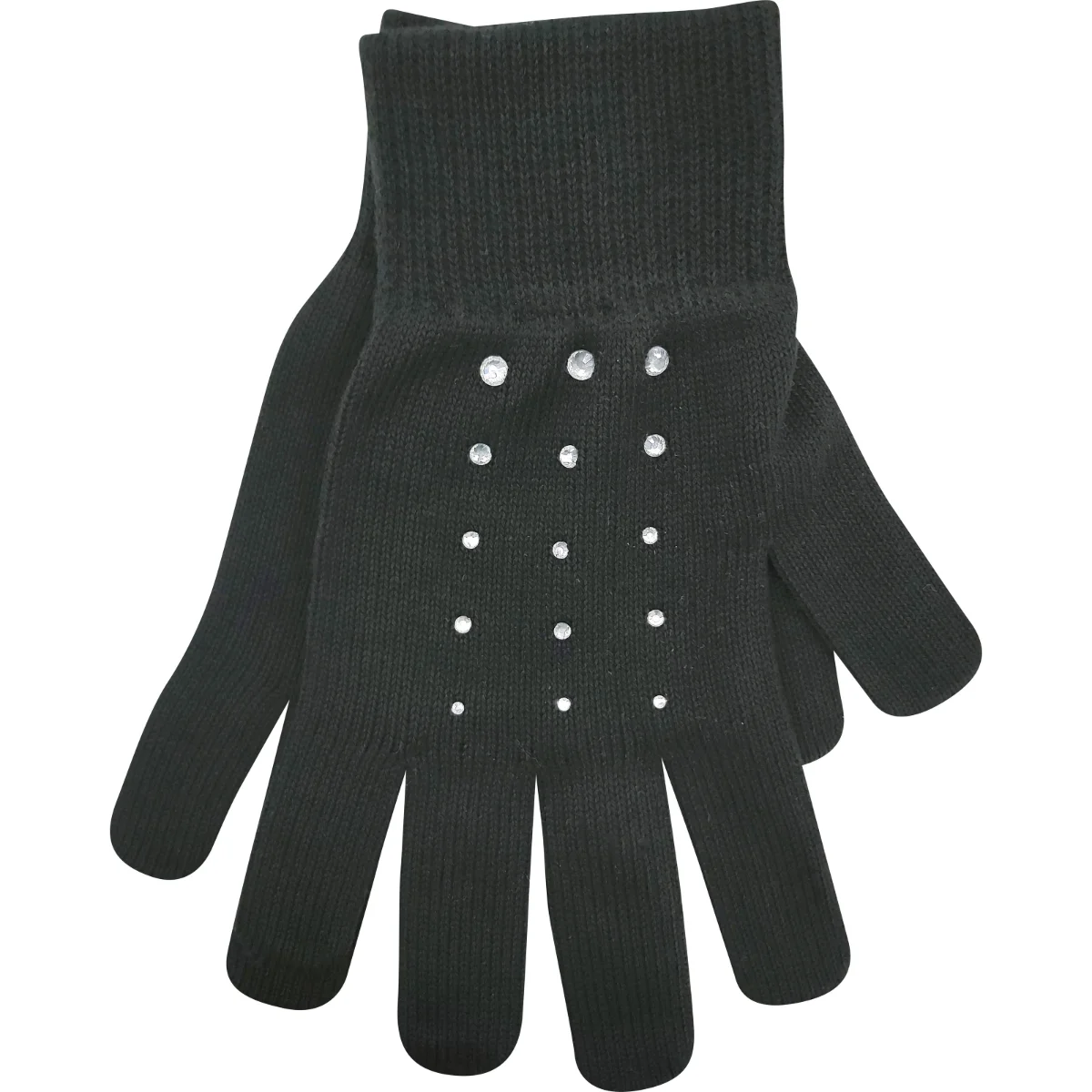 - damskie rękawiczki z cienkiej dzianiny bawełnianej, ozdobione kamieniami Swarovskiego