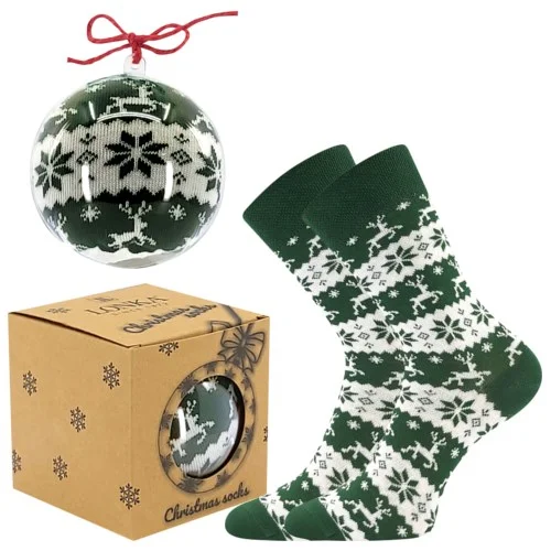 - skarpetki dziecięce, damskie i męskie z motywem świątecznym zapakowane jako ozdoba bożonarodzeniowa, z delikatnym i nieuciskającym ściągaczem, oryginalny prezent dla każdego