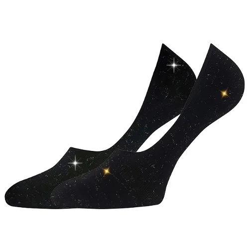 Damskie bardzo niskie buty Lonka® VIRGIT są niewidoczne w butach. Aby utrzymać je na stopie, mają elastyczną strefę wokół podbicia, a wewnątrz skarpety znajduje się silikon na pięcie, który zapobiega zsuwaniu się skarpety. Wiskoza bambusowa to naturalny materiał o naturalnych właściwościach antybakteryjnych i antyalergicznych, miękkie i jedwabiste włókno jest przyjemne w dotyku i dla skóry oraz dobrze wchłania wilgoć. Monochromatyczne słabe niewidoczne skarpetki mienią się dzięki srebrnemu i złotemu włóknu lureksowemu.