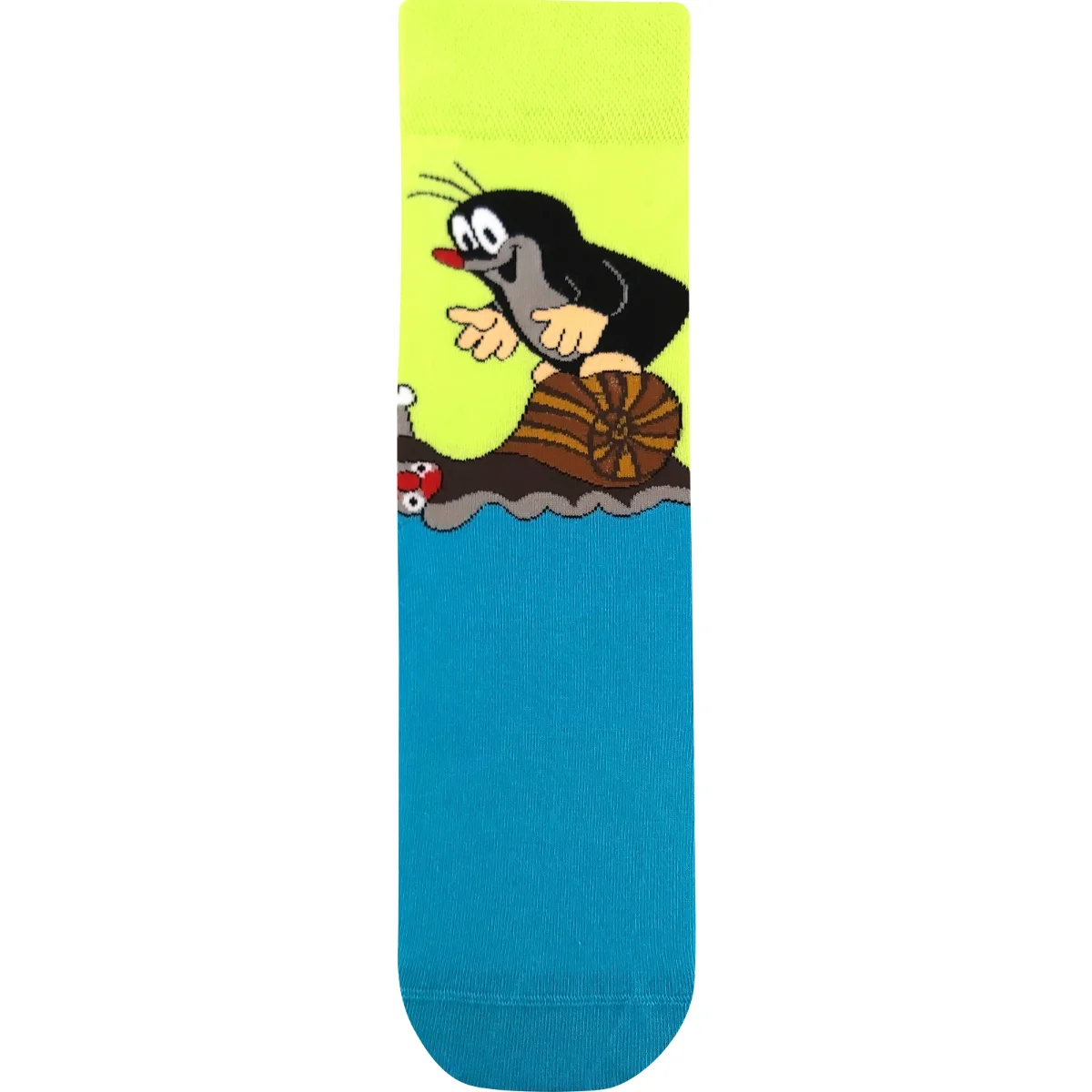 Damskie i męskie zabawne skarpetki Boma® KR 211 to słabe skarpetki z uroczym wizerunkiem Krecika autorstwa artysty Zdeněka Milera. Wróć do krainy bajek i zdobądź Krecika do swojej garderoby. Te klasyczne skarpetki o wysokiej zawartości bawełny rozjaśnią Twój strój, niezależnie od tego, czy nosisz garnitur, czy dżinsy. Dzianina 200-igłowa jest bardzo cienka, dzięki czemu dzianinowy obraz ma bardzo ostre szczegóły.