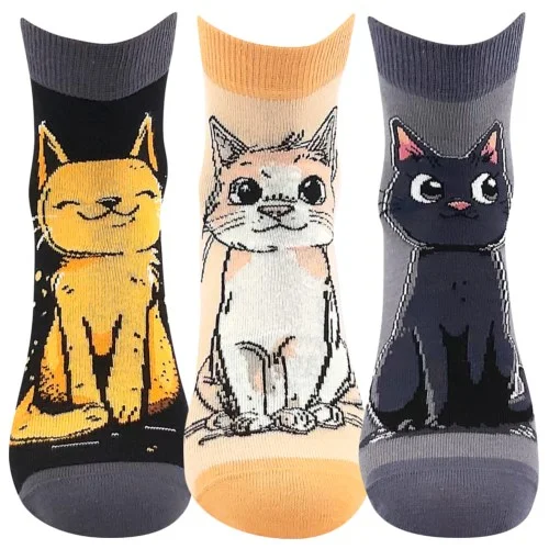 Damskie cienkie skarpetki Boma® MICKA 01 to zabawne skarpetki z motywem kota. Średnio wysokie skarpetki nad kostkę wykonane są z naturalnego materiału bawełnianego, który ma wysoką zdolność do wchłaniania wilgoci i jest bardzo przyjemny dla skóry. Udział elastanu gwarantuje elastyczność, a skarpetki dobrze trzymają kształt. Obszycie skarpet jest miękkie, a nie rozciągliwe. Ponadto palce są połączone płaskim łańcuszkiem, dzięki czemu przegub nigdzie nie uciska i nie powoduje pęcherzy ani pęcherzy. W tych wesołych skarpetkach będziesz czuć się dobrze zarówno w domu, jak i w pracy.