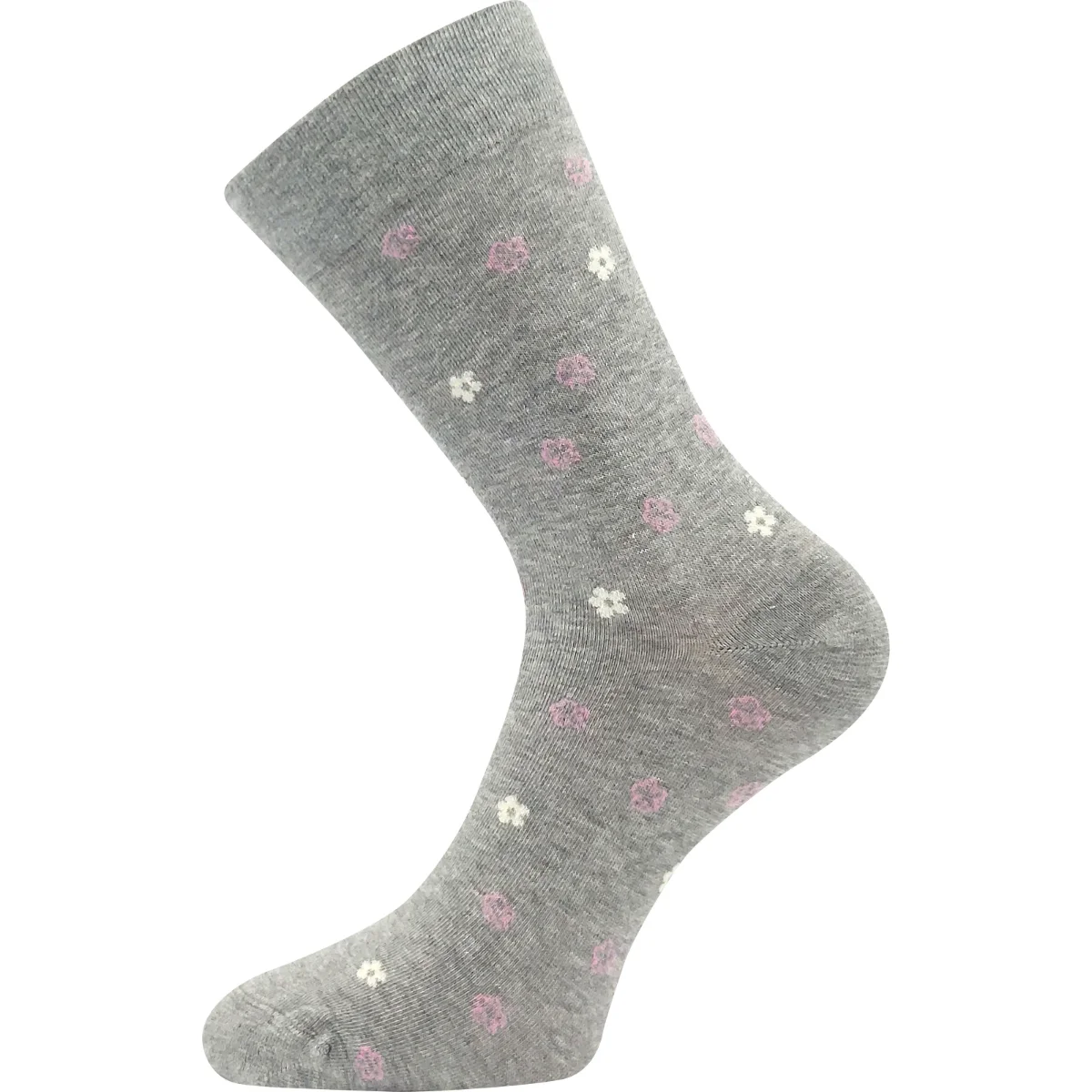 Cienkie skarpetki damskie Lonka® FLOWRANA są urocze na pierwszy rzut oka. Skarpetki mają średnią wysokość nad kostkami i są ozdobione małymi kwiatkami. Aby zapewnić maksymalny komfort, skarpetki mają specjalny medyczny ściągacz, który nie ciągnie ani nie szczypie. Wysokiej jakości skarpetki są wykonane z gładkiej dzianiny, dzianej na maszynie 200-igłowej, palce są połączone płaskim szwem łańcuszkowym, którego w ogóle nie czujesz. Bawełniane skarpetki nadają się do noszenia na co dzień w domu i w pracy.