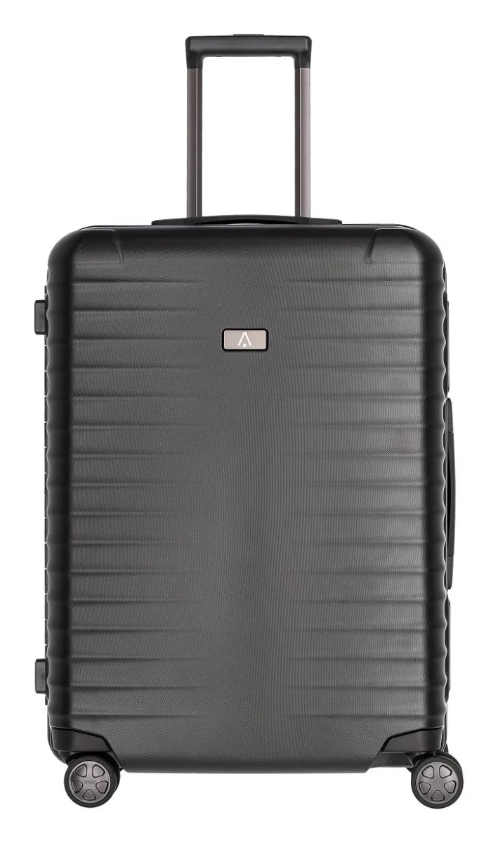 Ekskluzywna walizka skorupowa na czterech kółkach z konstrukcją ramową i systemem zamykania klapy ze zintegrowanym zamkiem TSA, zaprojektowana i wyprodukowana w Niemczech.