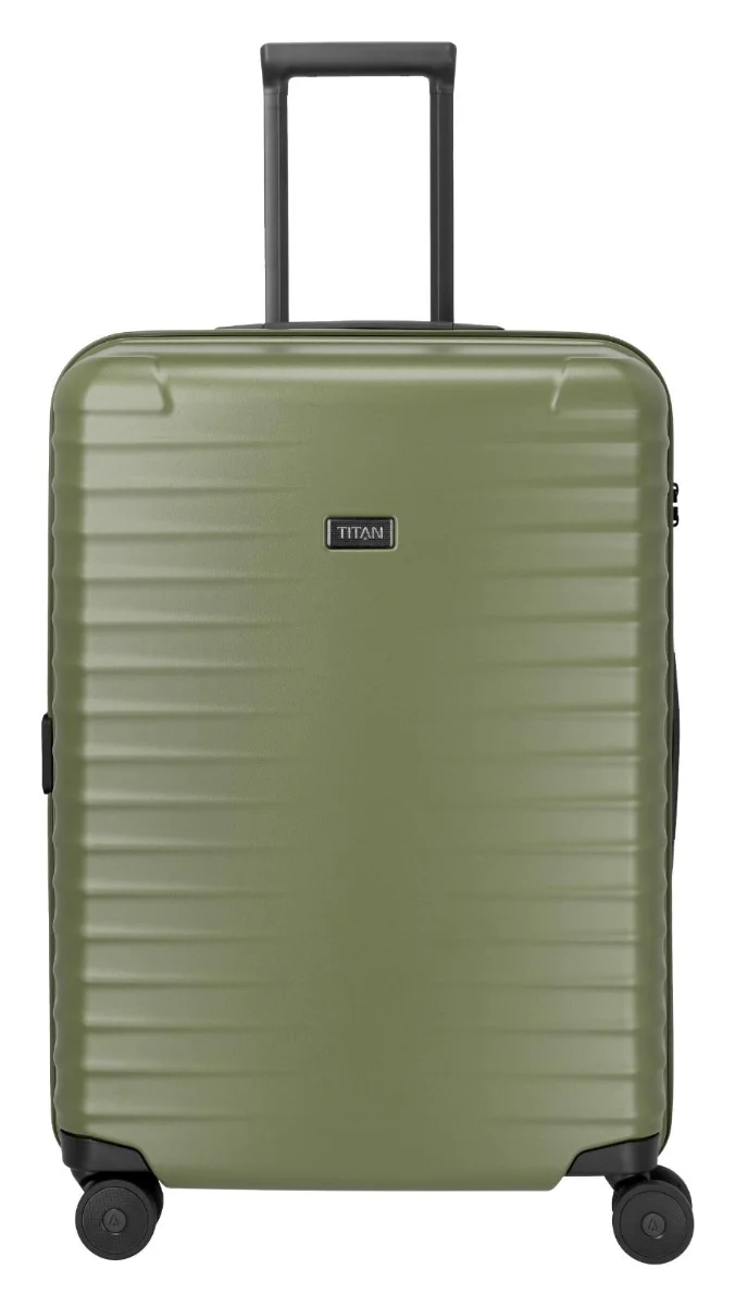 Luksusowa walizka z poliwęglanu o średnim rozmiarze, wyposażona w zamek TSA, 4 gładkie podwójne kółka i 10 lat gwarancji.