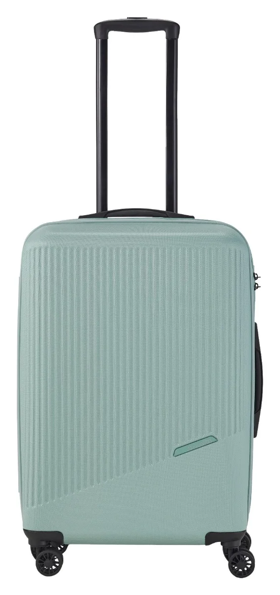 Walizka na czterech kółkach wykonana z wytrzymałego tworzywa ABS w modnym pastelowym kolorze ze zintegrowanym zamkiem TSA.