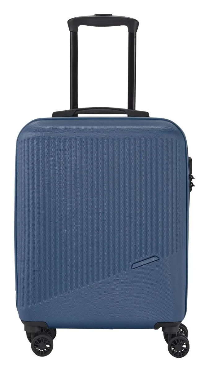 Walizka na czterech kółkach wykonana z wytrzymałego tworzywa ABS w modnym niebieskim kolorze ze zintegrowanym zamkiem szyfrowym.