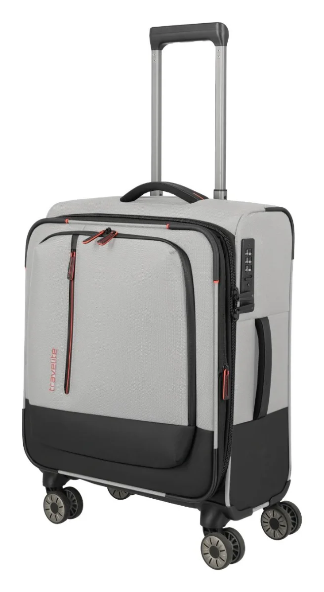 Čtyřkolečkový textilní palubní kufr z recyklovaného polyesteru s vodoodpudivým dnem, TSA zámkem, expandérem, kapsou na notebook a integrovanou jmenovkou.