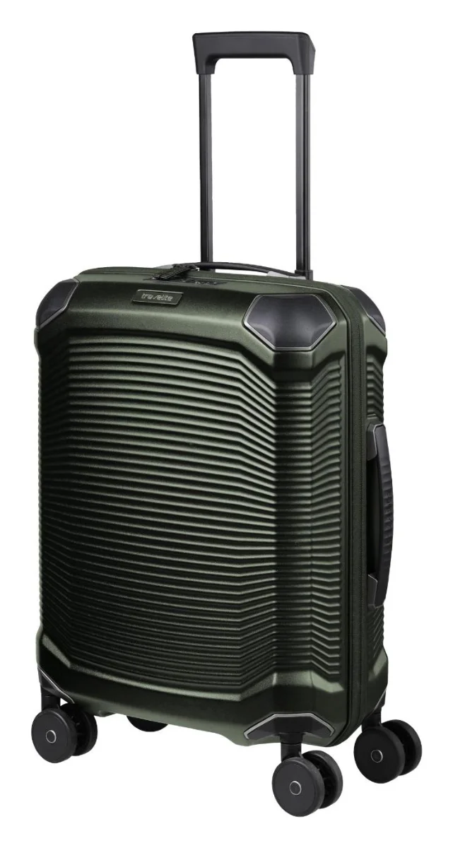Příruční kufr z odolného polykarbonátu, vybavený TSA zámkem, zesílenými rohy a čtyřmi kvalitními kolečky.