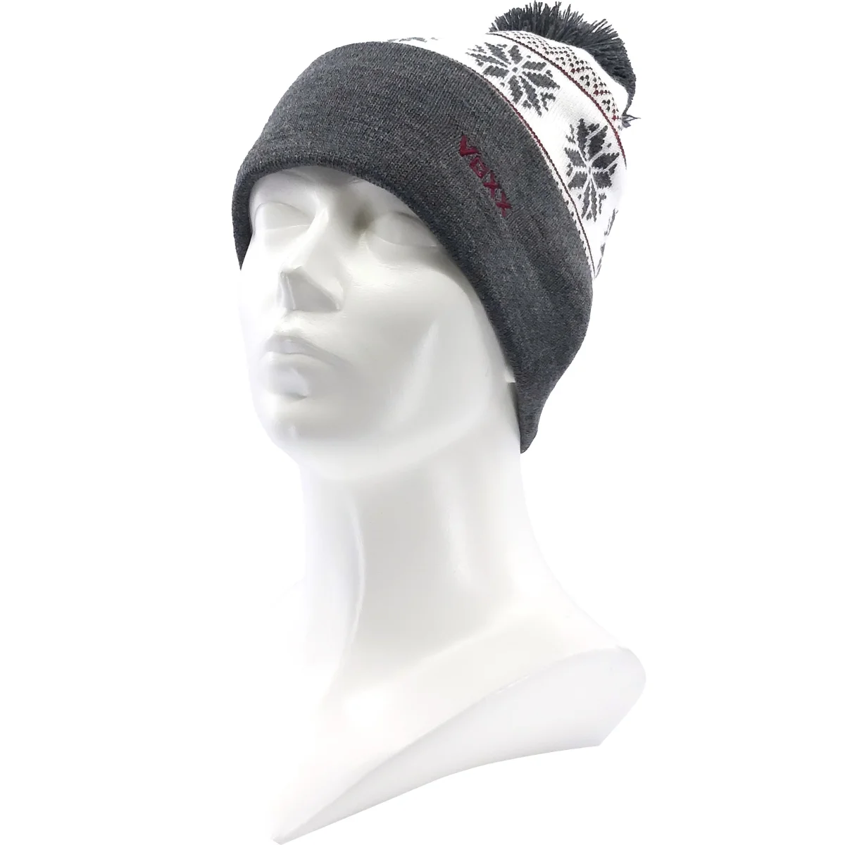 Męska czapka sportowa VoXX® NIRO z norweskim wzorem płatków śniegu jest idealna na chłodne dni. Czapka ma składany szeroki daszek z wyhaftowanym napisem VoXX i pomponem z frędzlami, który doskonale uzupełnia zimowy design. Podwójna miękka dzianina pięknie ogrzeje każdą mroźną pogodę i sprawi, że nadal będziesz wyglądać stylowo. Wzorzysta czapka zimowa jest idealna do noszenia w zimową pogodę.