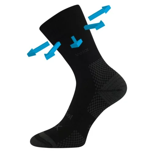 - damskie i męskie skarpety sportowe wykonane z wełny merynosów, z wyściełaną wkładką frotte, specjalnym miękkim, nieuciskającym ściągaczem, łańcuszkiem na palcach, ochroną antybakteryjną z jonami srebra w materiale silproX, klasa temperaturowa C
