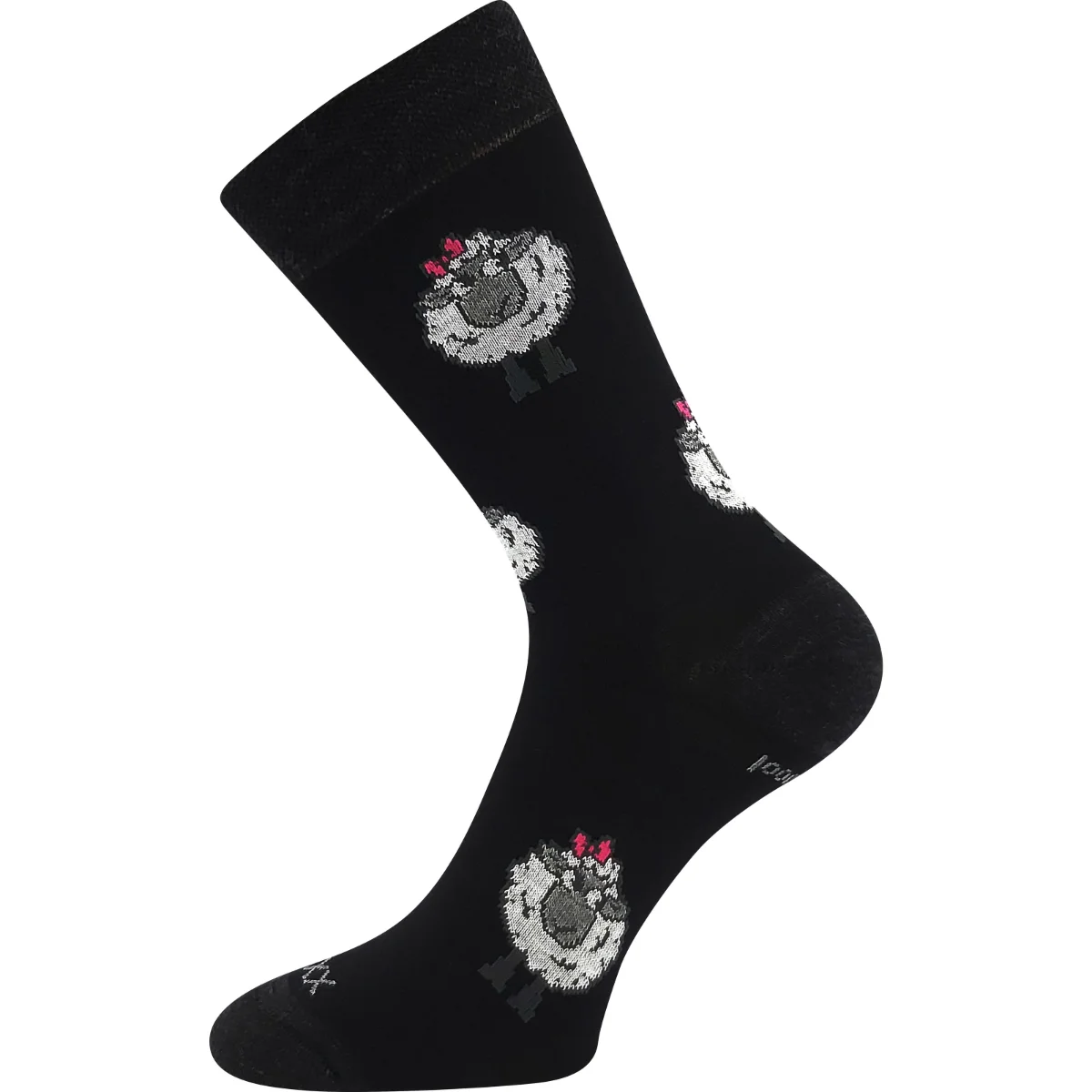- damskie kolorowe skarpetki z zabawnym motywem, mają wzmocniony palec i piętę - odporne na ścieranie, palec jest zamknięty łańcuszkiem, dzięki czemu nigdzie nie uciska, wełna merynosów jest naturalnie antybakteryjna i jest również uzupełniona materiałem silproX z jonami srebra, klasa temperaturowa: B-C
