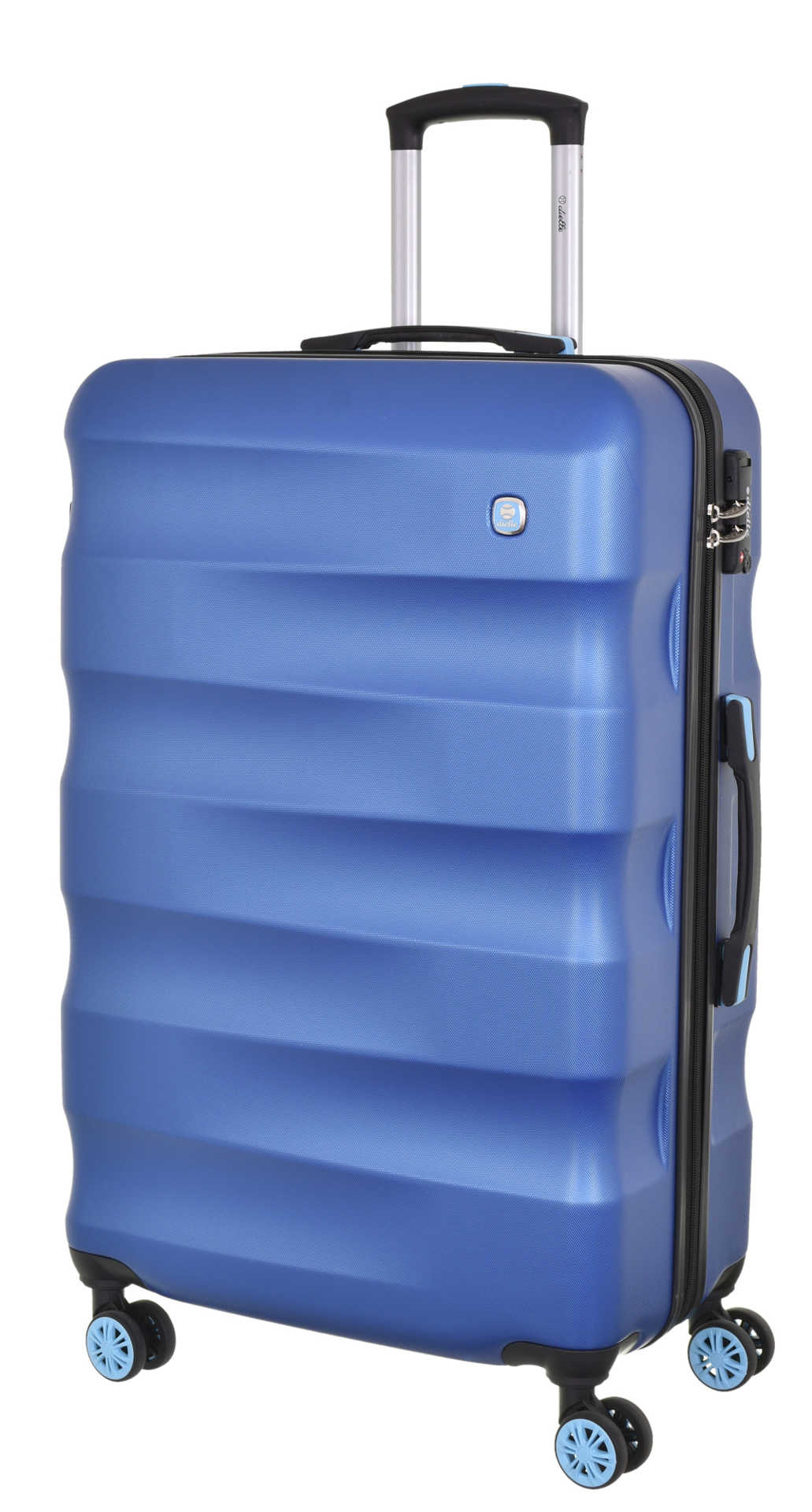 Niebieska walizka shell 76 cm włoskiej marki Dielle to idealny towarzysz podróży. Dzięki ultralekkiemu materiałowi podróżowanie staje się przyjemnością. Walizka pomieści wszystkie niezbędne rzeczy.