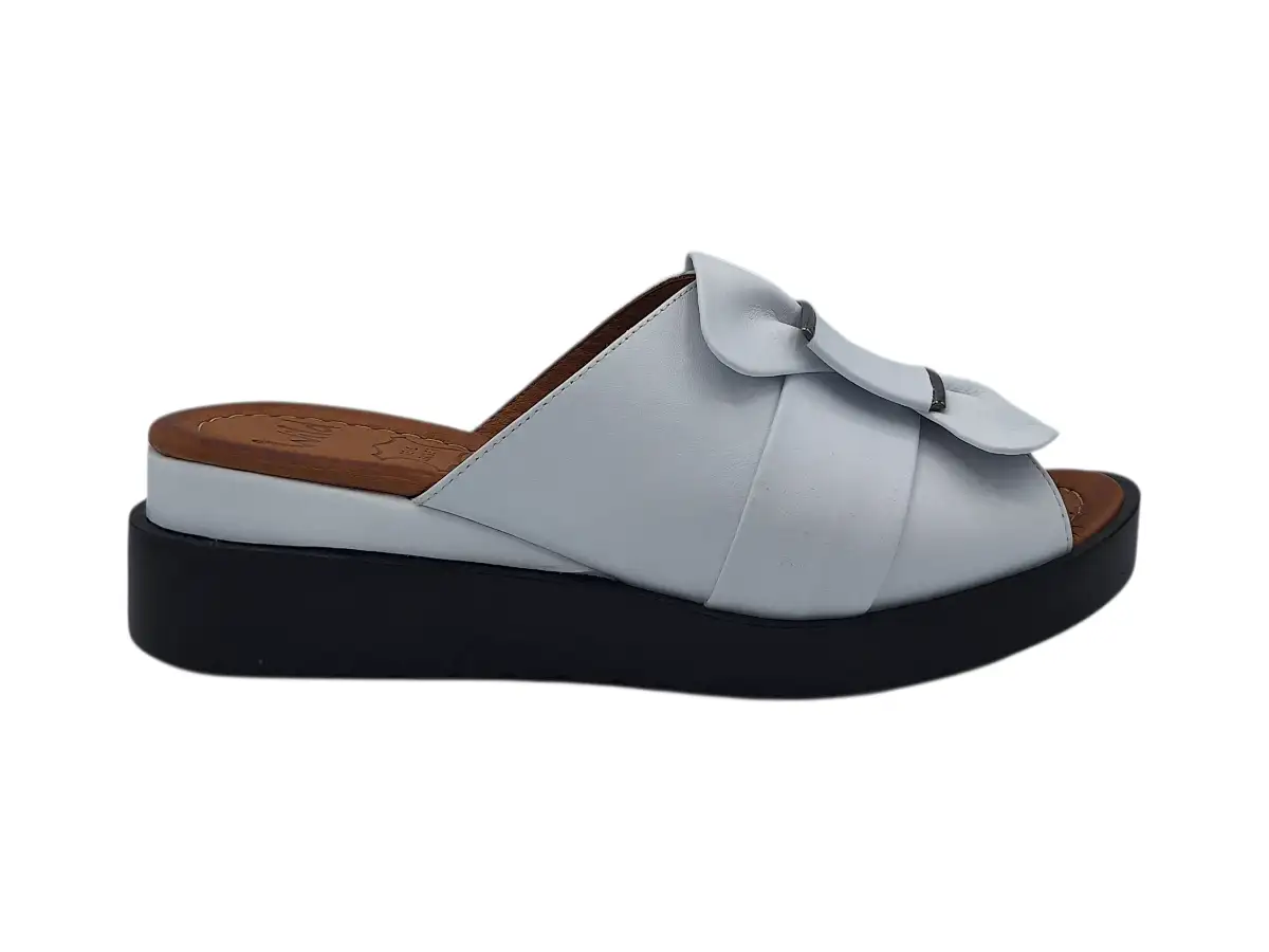 Damskie kapcie Wild to idealne połączenie eleganckiego wzornictwa, wygody i wysokiej jakości wykonania . Te letnie, skórzane kapcie w kolorze białym zachwycają od pierwszego wejrzenia nowoczesnym wyglądem z imponującą czarną podeszwą i koturnem, który optycznie wydłuża nogę, a jednocześnie zapewnia stabilność podczas chodzenia.