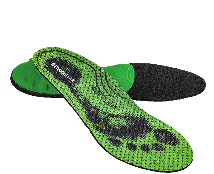 Anatomiczna wkładka o maksymalnej zdolności absorpcyjnej, z włóknem bambusowym i amortyzującą żelową piętą.